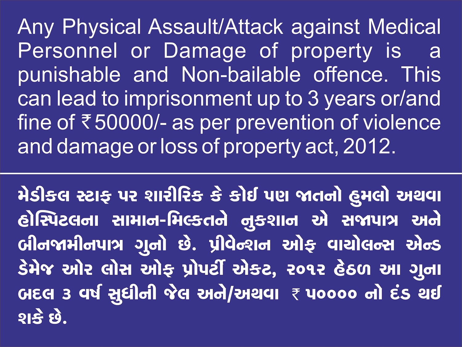 MEDICAL STAFF VIOLENCE ACT SIGN -min quantity